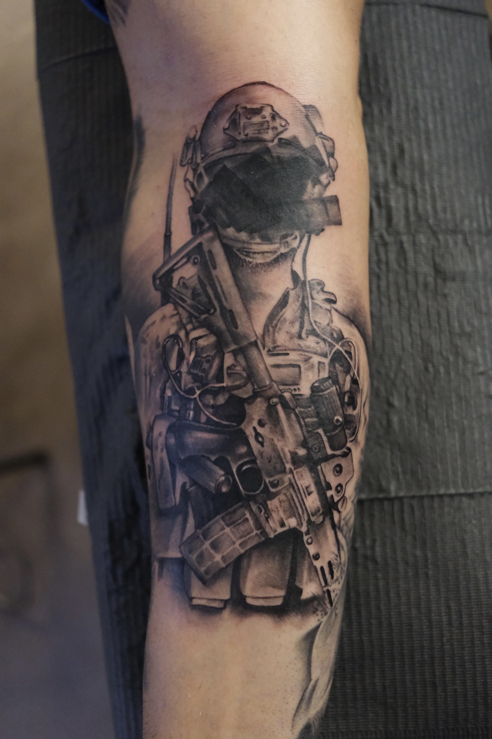 My name is Anthony Travieso, I’ve been a Tattoo Artist since November of 2010. I’m originally from Tampa until I joined the Army. Then I got to see the world. I’m an Army Airborne Infantry Veteran. I served with the 82nd Airborne Divisions 1-505th PIR. I was medically retired due to wounds received (I.E.D) while deployed in Iraq during the re-insurgency of 06. Now I just hang out and get to do pretty cool tattoos on some even cooler.